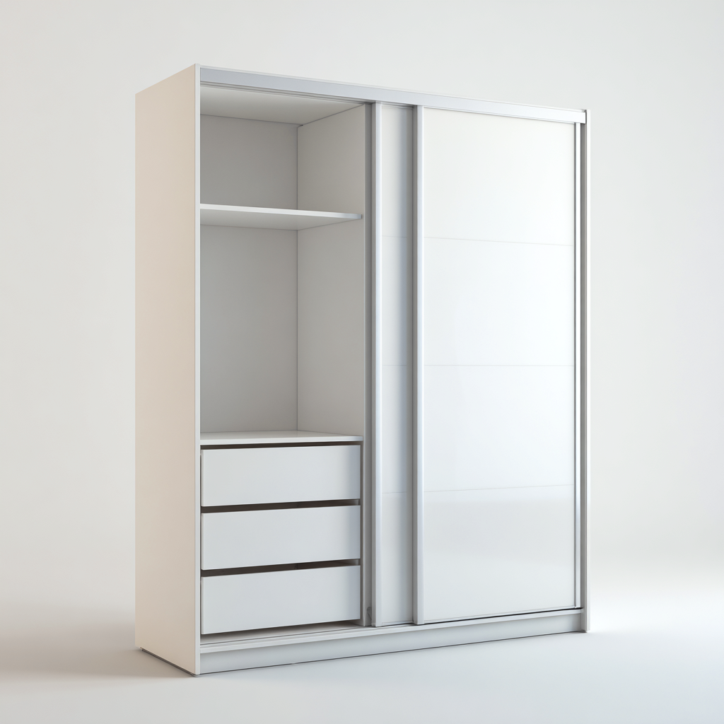 Armadio con ante scorrevoli pensato per la camera da letto, ideale per ambienti moderni che richiedono una soluzione compatta e funzionale. Il design pulito e lineare valorizza gli spazi luminosi e si integra facilmente con diversi stili di arredamento.
