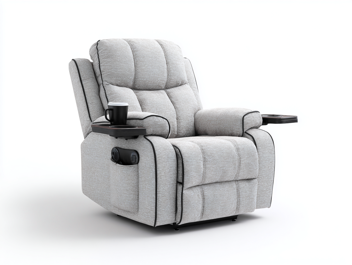 Poltrona reclinabile progettata per offrire una seduta comoda e funzionale in ambienti domestici come soggiorno o area relax. La struttura accogliente e l'imbottitura generosa favoriscono un'esperienza di utilizzo confortevole durante il riposo quotidiano.